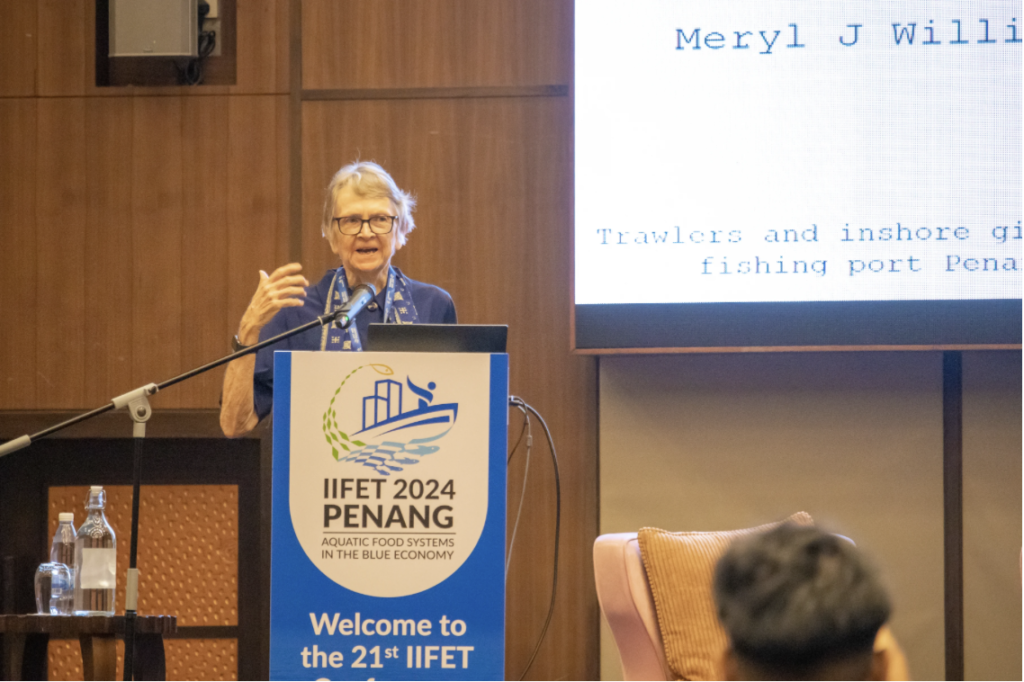 Dr. Meryl Williams was awarded the 2024 Distinguished Service Award by the International Institute of Fisheries Economics & Trade (IIFET) in acknowledgement of her lifelong dedication to sustainable fisheries and her pivotal role in improving the welfare of fishing communities worldwide.