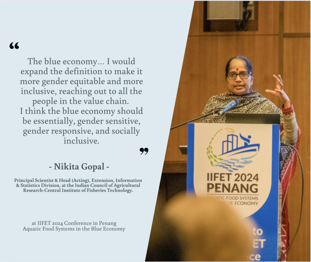The award was given at the IIFET 2024 conference in Penang, Malaysia (July 15-19), where she was an invited speaker and also co-lead the workshop “Integrating Gender into Fisheries and Aquaculture Economics and Trade Research.”