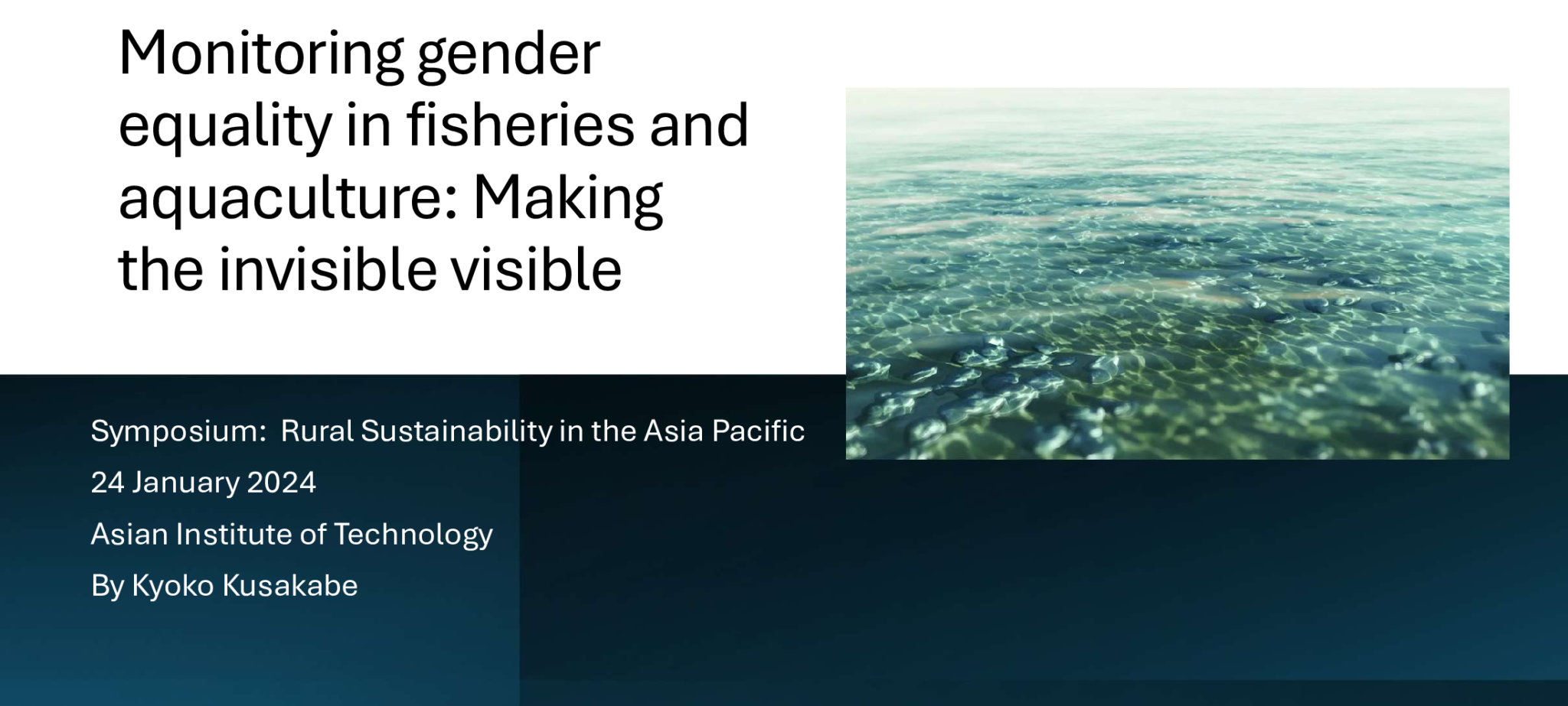 Prof. Kyoko Kusakabe made a presentation on “Monitoring gender equality in fisheries and aquaculture: Making the invisible visible” on 24 January 2024 at the symposium on Rural Sustainability in the Asia Pacific. Monitoring only outcomes and not processes makes project monitoring inefficient in capturing how development efforts can move from one outcome to the next, and therefore the learning from such monitoring efforts are limited.